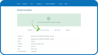 On the confirmation screen, click on Save as Shortcut, located just above the details of the transaction you just completed.