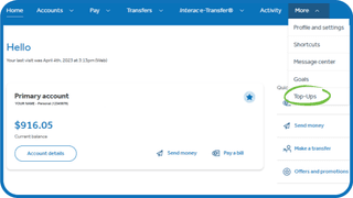 Rounded savings will round your debit purchases to the nearest $1, $2, or $5. - Under Choose the amount and your account, use the Amount drop-down to select your Top-Up amount.