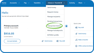 Here's how to view and filter your INTERAC e-Transfer transaction history: